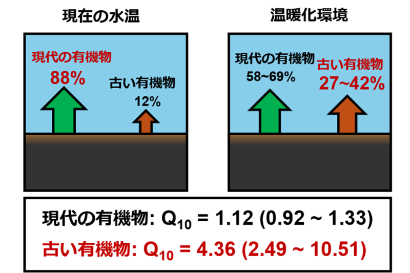 陸域起源の古い有機物の方が温度への感受性が高いことが明らかになりました。